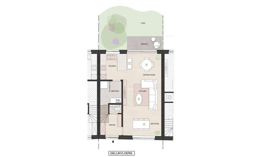 BEZOEK OP afspraak. Bel nu voor meer info en/of bezoek bel 09 225 26 27. Afwerkingen nog te kiezen! In het hart van het mooie Eksaarde vindt men deze zeer degelijke nieuwbouwwoning. Hierbij de indeling van deze verrassend ruime woning: op het gelijkvloers vinden we de inkomhal met apart gastentoilet, lichtrijke leefruimte, open keuken met berging en ontbijthoek. Op de 1ste verdieping vinden we de nachthal, 2 zeer ruime slaapkamers, apart toilet en badkamer met dubbele lavabo, bad en douche. De in te richten zolder is makkelijk bereikbaar via een vaste trap. Buiten beschikt de woning over een stadstuin, tuin/fietsenberging en autostaanplaats achteraan. Daarnaast beschikt deze woning over de laatste nieuwe technieken zoals overal vloerverwarming met warmtepomp inclusief passieve koeling, zonnepanelen, ventilatie type D, regenwater met pomp, ... verwacht E-peil:23!! Deze halfopen nieuwbouwwoning heeft een sublieme ligging dankzij de nabijheid, scholen, sportpleinen, winkels, openbaar vervoer, ontspanning,... en met een vlotte bereikbaarheid E34 en E17. !!ABSOLUTE TOPPER IN GEZOARDE!! BEZOEK OP afspraak. PRIJS: 445 000 euro, exclusief kosten en 6 % BTW mogelijk. Afwerkingen nog te kiezen!! Laat deze unieke kans niet liggen en bel onmiddellijk voor meer info en/of bezoek! Bel 09 225 26 27 of surf naar www.cardi-woonadvies.be.